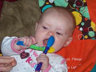 We've recently, under our doctor's recommendations, started Emma on rice cereal. She spits out more than she eats and makes some pretty hilarious faces, but we're making progress!
