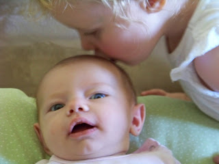 At two months, Lauren is becoming more and more responsive. She is smiling a ton, cooing, and giggling. Her face lights up when she sees or hears Emma. She learned last week how to stick out her tongue and likes to copy us when we stick out our tongues. She is 11 pounds, 5.5 ounces and 23.5 inches long...50th percentile.